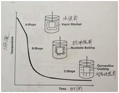 圖1 是常見(jiàn)淬火過(guò)程典型的溫度/時(shí)間曲線。個(gè)冷卻曲線通常具有三個(gè)區(qū)域,傳統(tǒng)上命名為 A 期、B 期和 C 期。